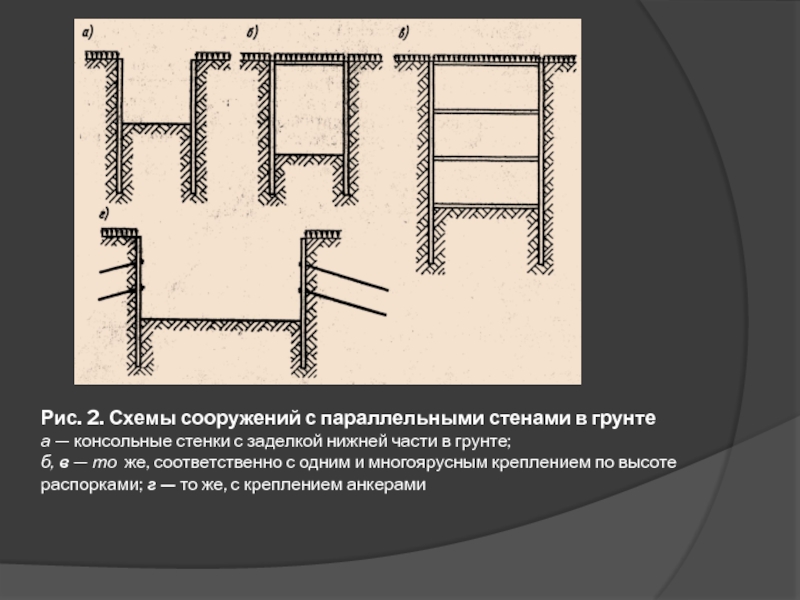 Слайд 4Рис. 2. Схемы сооружений с параллельными стенами в грунте