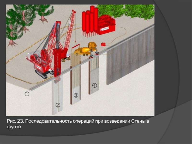 Слайд 32Рис. 23. Последовательность операций при возведении Стены в грунте