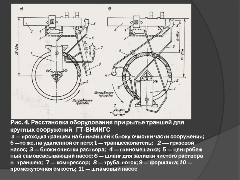 Слайд 9Рис. 4. Расстановка оборудования при рытье траншей для круглых сооружений