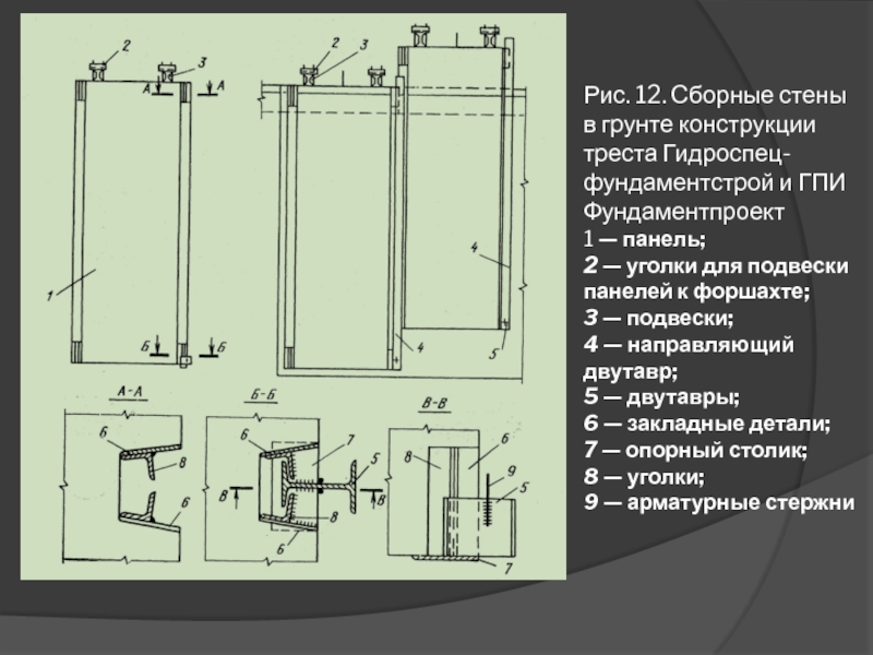 Слайд 18Рис. 12. Сборные стены в грунте конструкции треста Гидроспец-