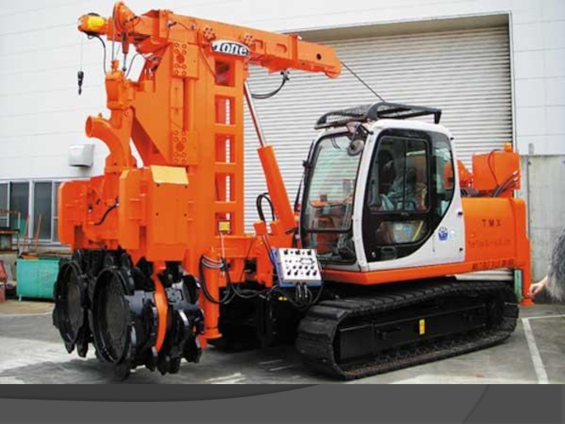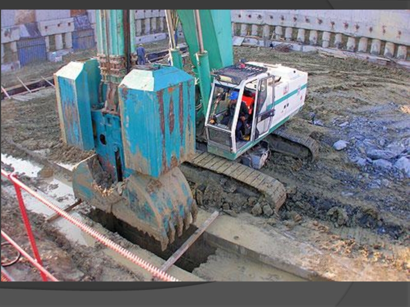 Слайд 22Станки и механизмы, применяемые для разработки траншей по методу "стена в