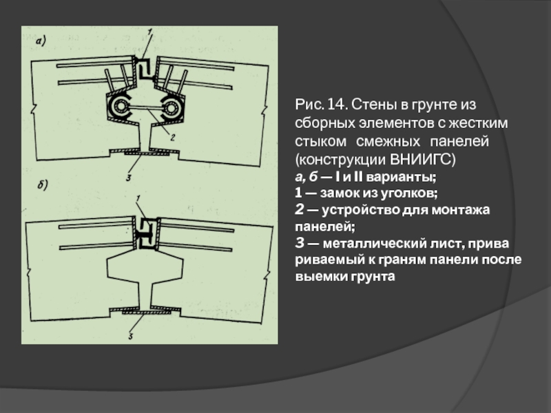 Слайд 20Рис. 14. Стены в грунте из сборных элементов с жестким