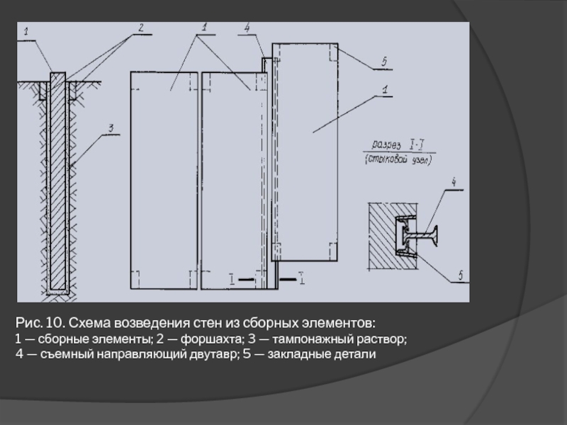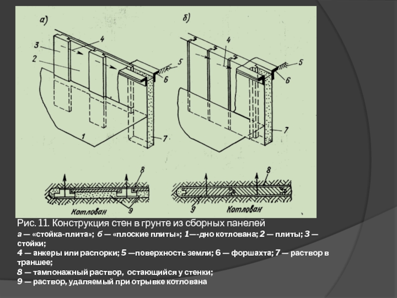 Слайд 17Рис. 11. Конструкция стен в грунте из сборных панелей