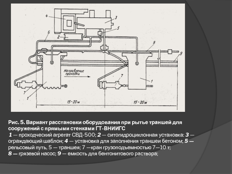 Слайд 10Рис. 5. Вариант расстановки оборудования при рытье траншей для сооружений с