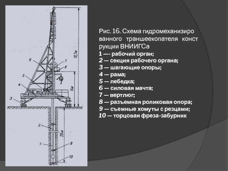 Слайд 24Рис. 16. Схема гидромеханизированного траншеекопателя конструкции ВНИИГСа