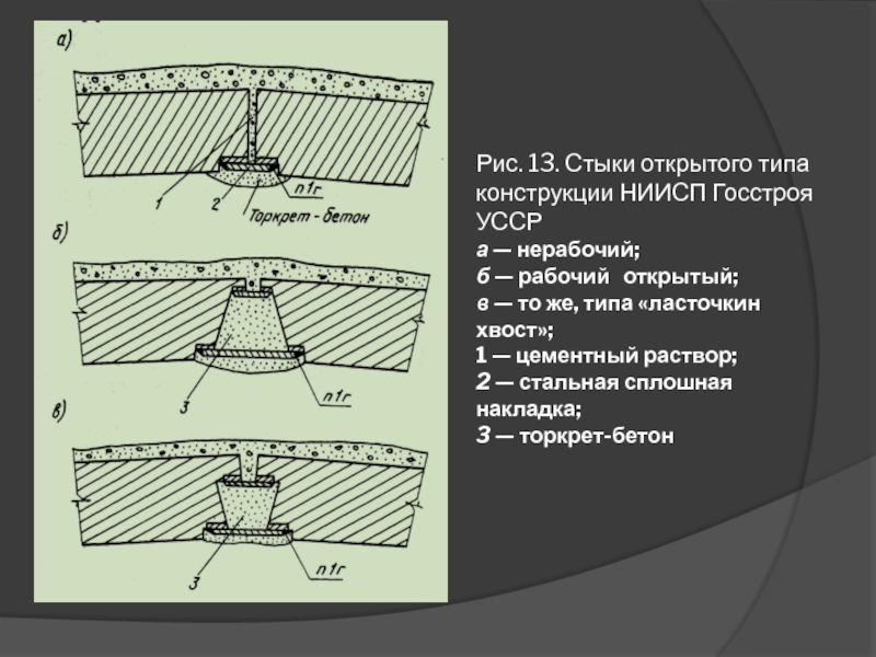 Слайд 19Рис. 13. Стыки открытого типа конструкции НИИСП Госстроя УССР