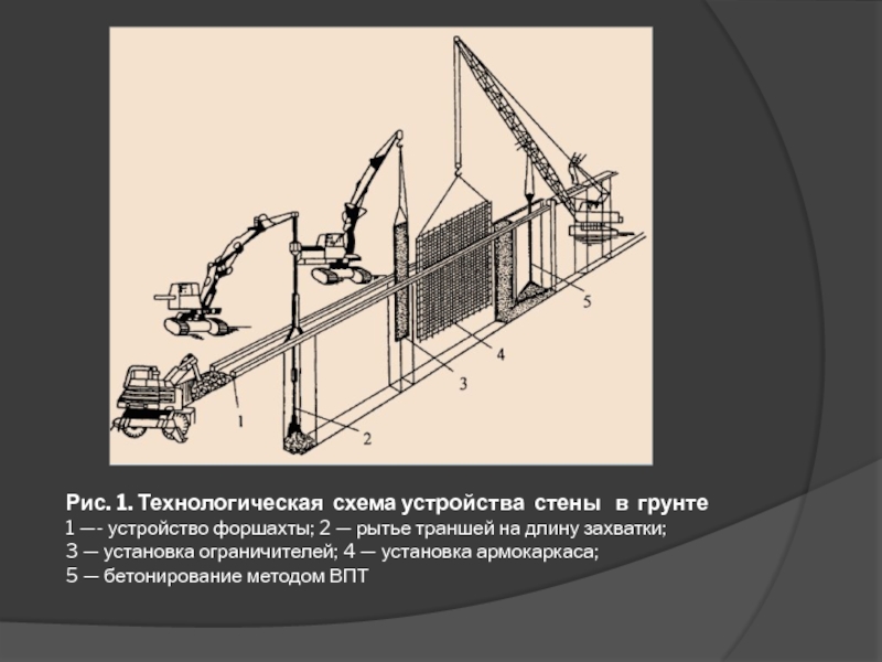 Слайд 3Рис. 1. Технологическая схема устройства стены в грунте