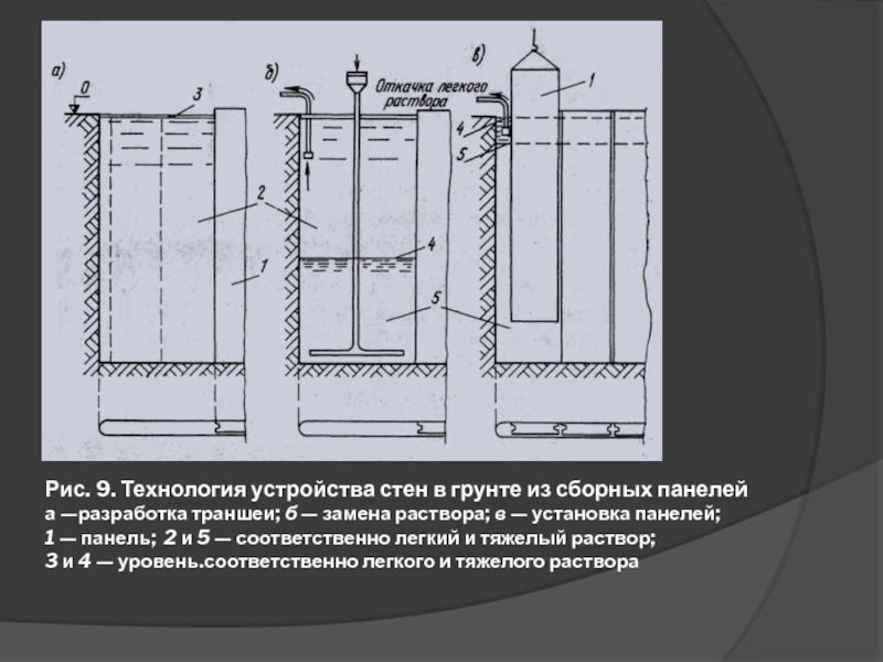 Слайд 15Рис. 9. Технология устройства стен в грунте из сборных панелей