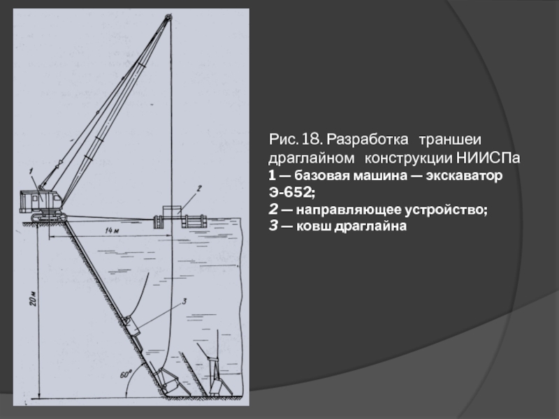 Слайд 26Рис. 18. Разработка траншеи драглайном конструкции НИИСПа