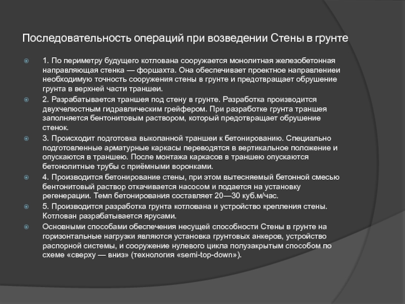 Слайд 31Последовательность операций при возведении Стены в грунте