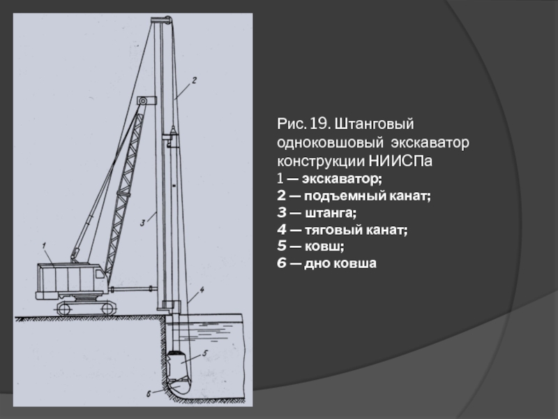 Слайд 27Рис. 19. Штанговый одноковшовый экскаватор конструкции НИИСПа