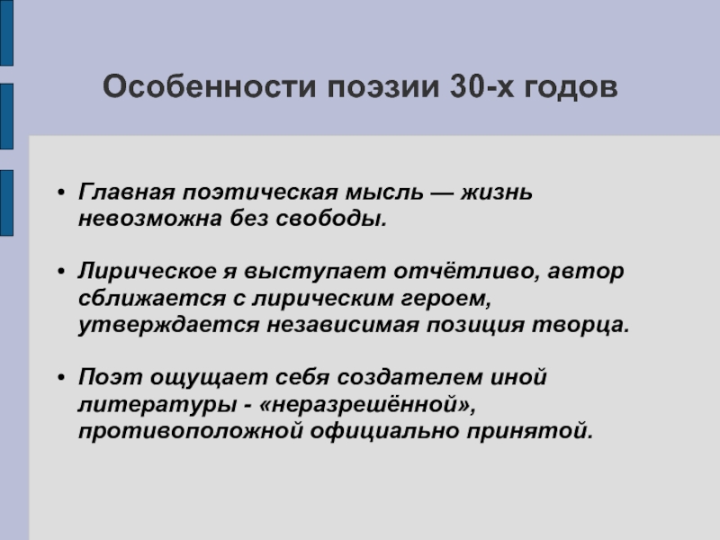 Поэт ощущает себя создателем иной литературы - «неразрешённой», противоположной официально принятой.