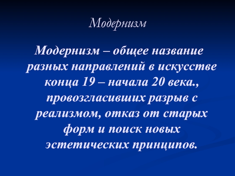 Модернизм – общее название разных направлений в искусстве конца