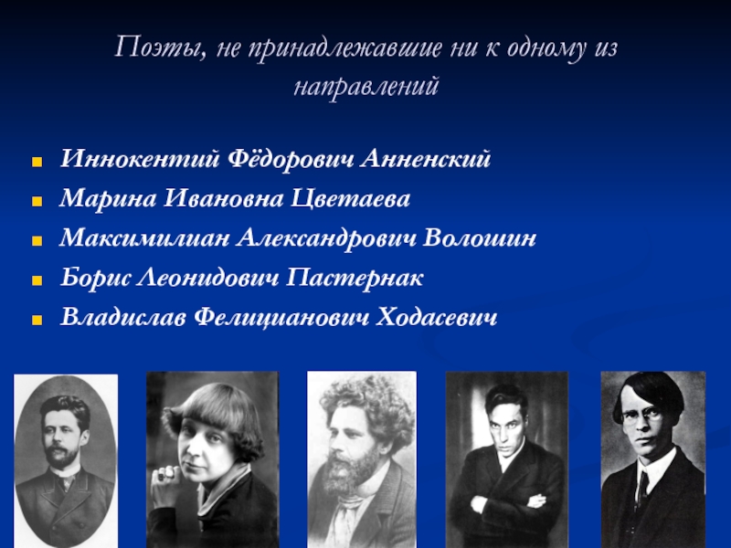 Слайд 35Поэты, не принадлежавшие ни к одному из направлений
