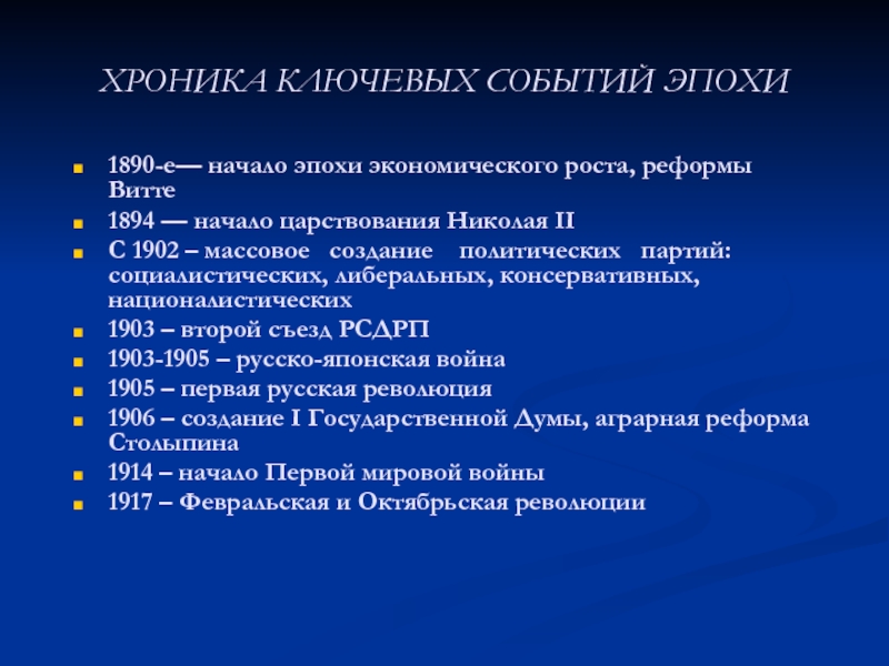 Слайд 3ХРОНИКА КЛЮЧЕВЫХ СОБЫТИЙ ЭПОХИ