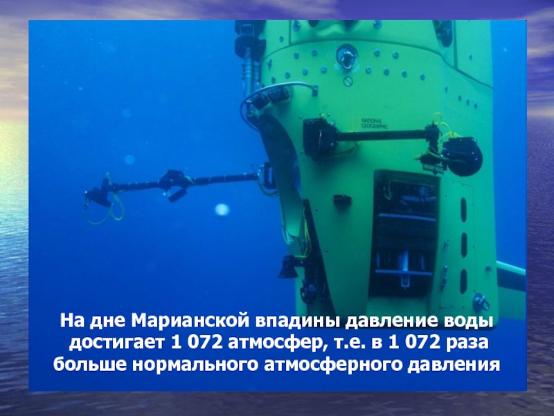 На дне Марианской впадины давление воды