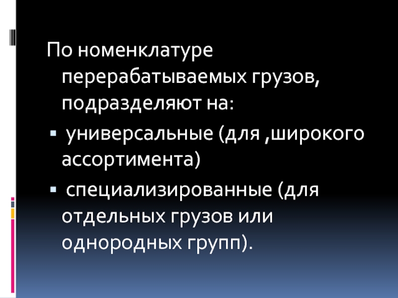 Слайд 6По номенклатуре перерабатываемых гpузов, подразделяют на: