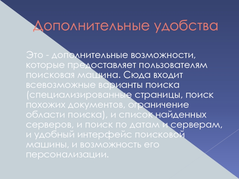 Это - дополнительные возможности, которые предоставляет пользователям поисковая машина. Сюда