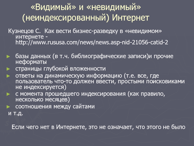 Кузнецов С. Как вести бизнес-разведку в «невидимом»