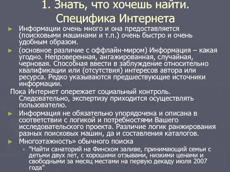 Слайд 41. Знать, что хочешь найти. Специфика Интернета