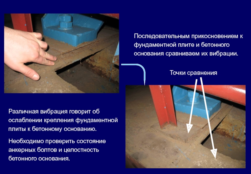 Различная вибрация говорит об ослаблении крепления фундаментной плиты к бетонному основанию.