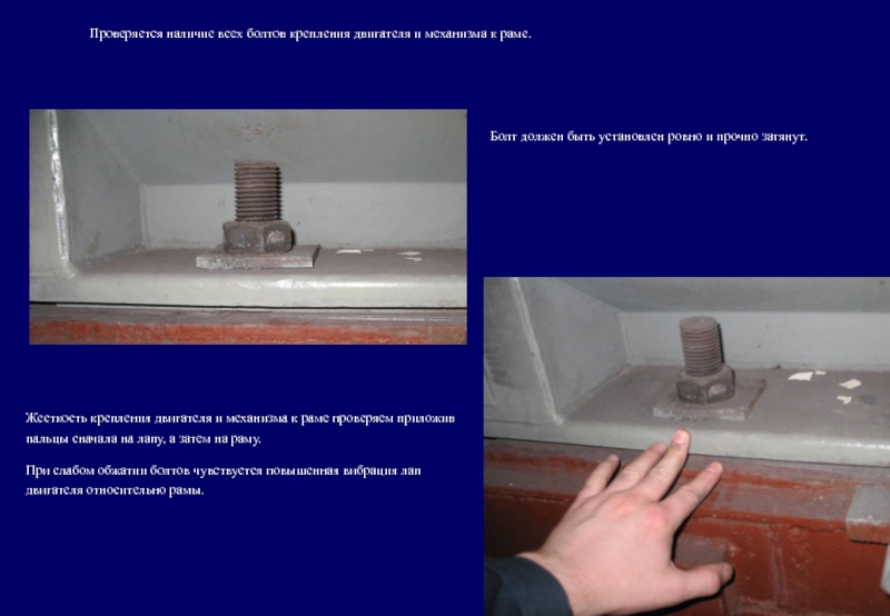 При слабом обжатии болтов чувствуется повышенная вибрация лап двигателя относительно рамы.