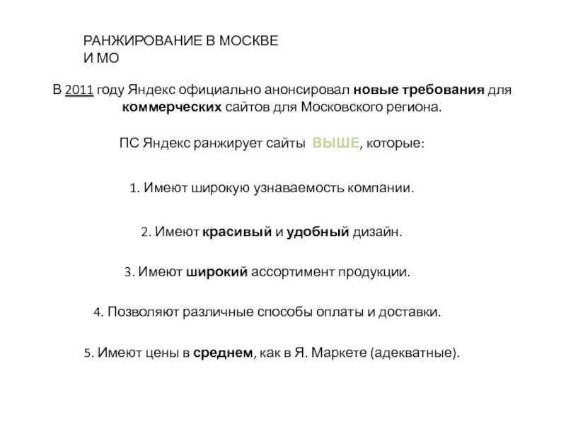 ПС Яндекс ранжирует сайты ВЫШЕ, которые: