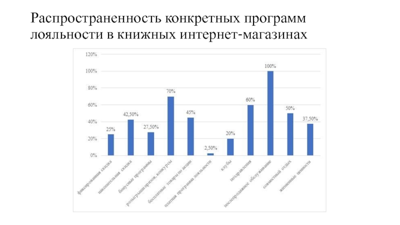 Слайд 18Распространенность конкретных программ лояльности в книжных интернет-магазинах