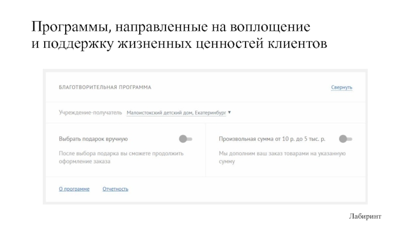Слайд 13Программы, направленные на воплощение и поддержку жизненных ценностей клиентов