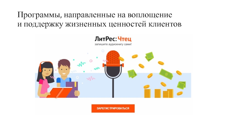 Слайд 14Программы, направленные на воплощение и поддержку жизненных ценностей клиентов