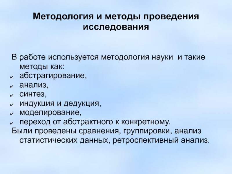 Были проведены сравнения, группировки, анализ статистических данных, ретроспективный анализ.