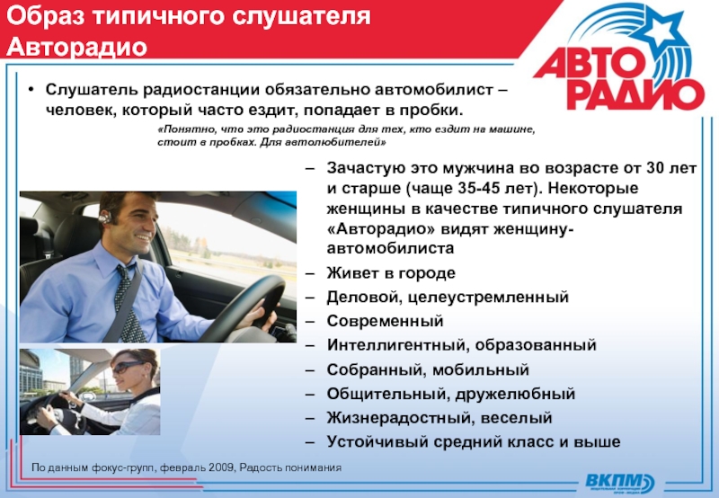 Слушатель радиостанции обязательно автомобилист – человек, который часто ездит, попадает в пробки.