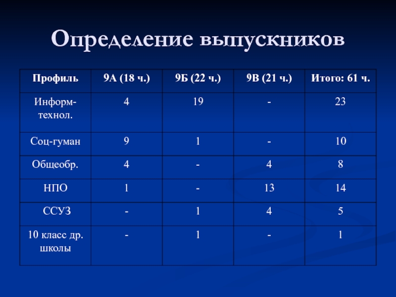Выпускники 9 класса ОУ, желающие продолжить обучение в профильных классах 3 ступени общего образования, сдают два экзамена по предметам, соответствующим данному профилю обучения.