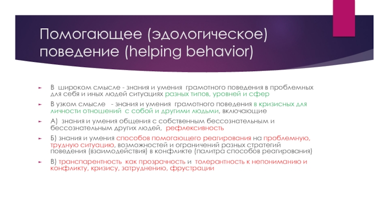 Слайд 13Помогающее (эдологическое) поведение (helping behavior)