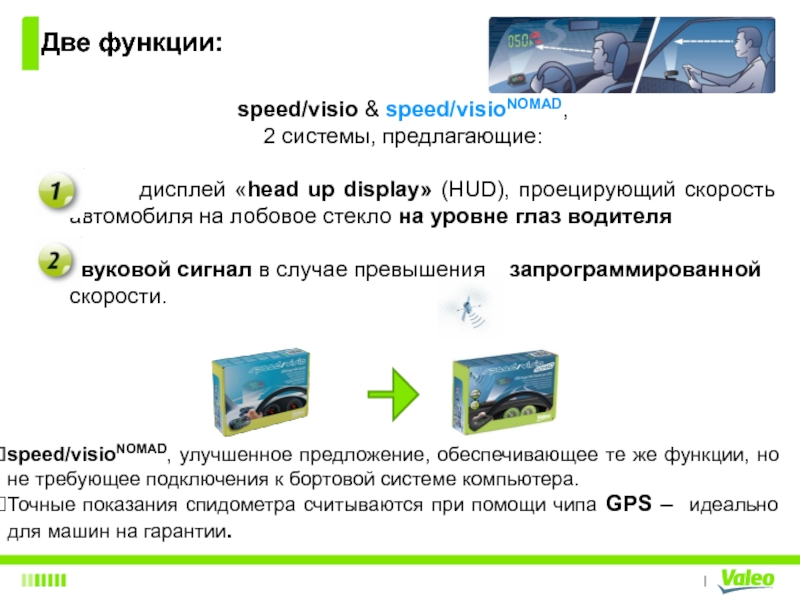 speed/visioNOMAD, улучшенное предложение, обеспечивающее те же функции, но не требующее подключения к бортовой системе компьютера.