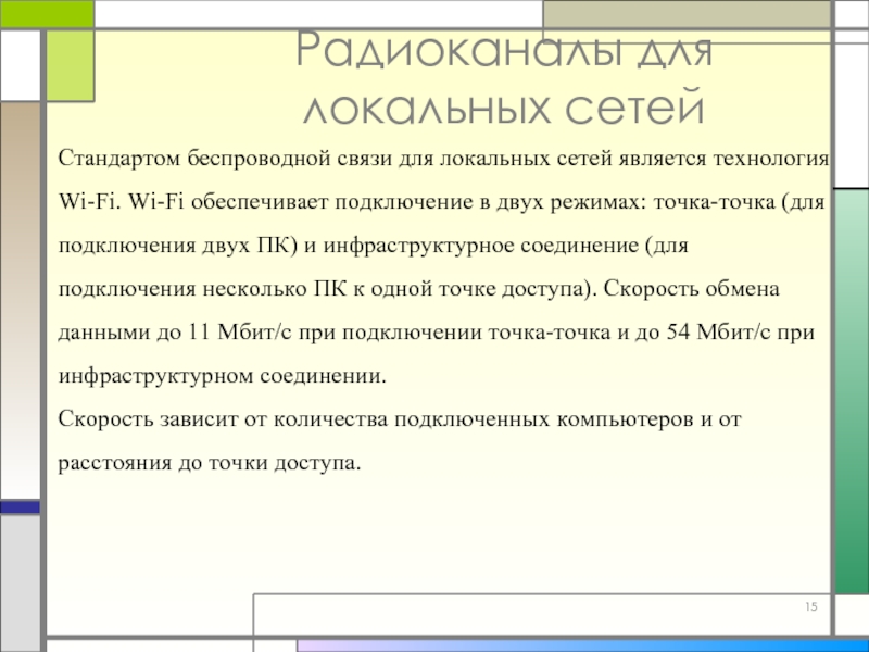 Слайд 15Радиоканалы для локальных сетей