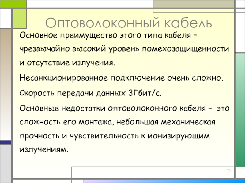 Слайд 13Оптоволоконный кабель