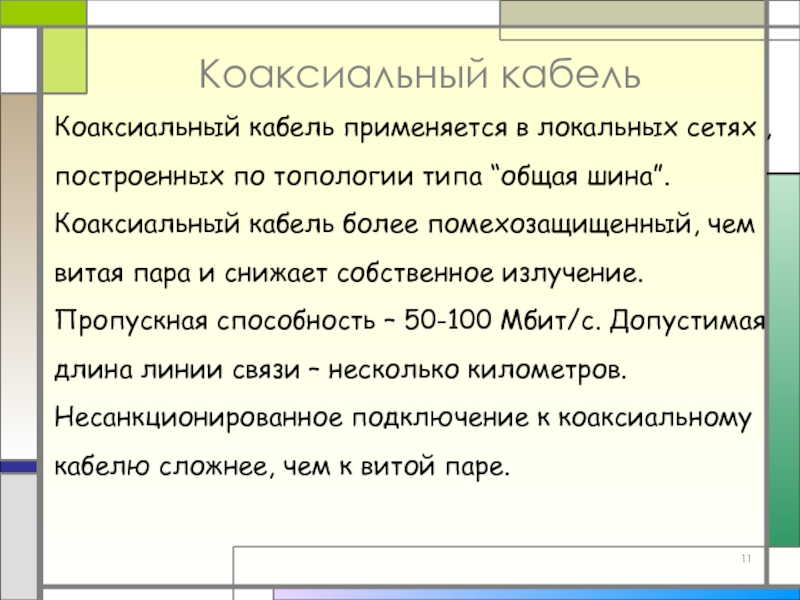 Слайд 11Коаксиальный кабель