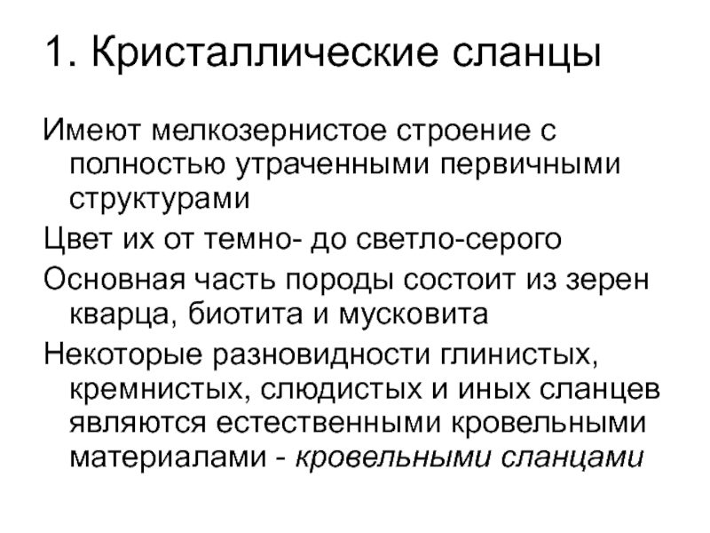 Слайд 651. Кристаллические сланцы