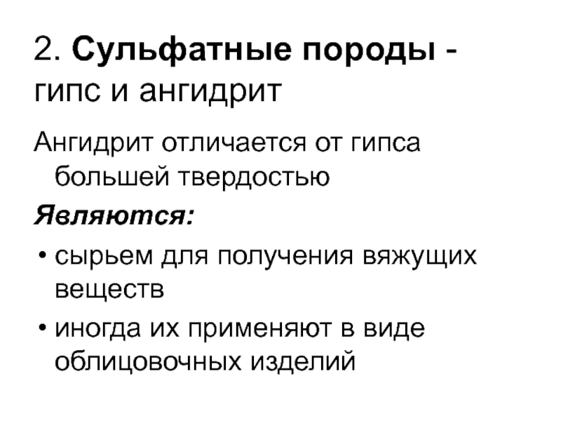Слайд 522. Сульфатные породы - гипс и ангидрит