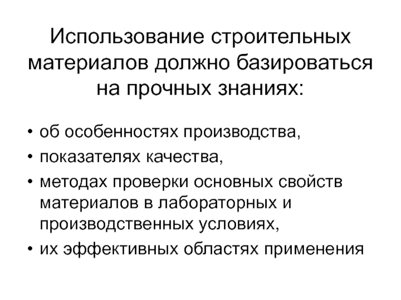Слайд 2Использование строительных материалов должно базироваться на прочных знаниях: