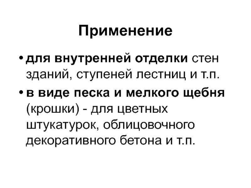 песка и мелкого щебня (крошки) - для цветных штукатурок, облицовочного декоративного бетона и т.п.