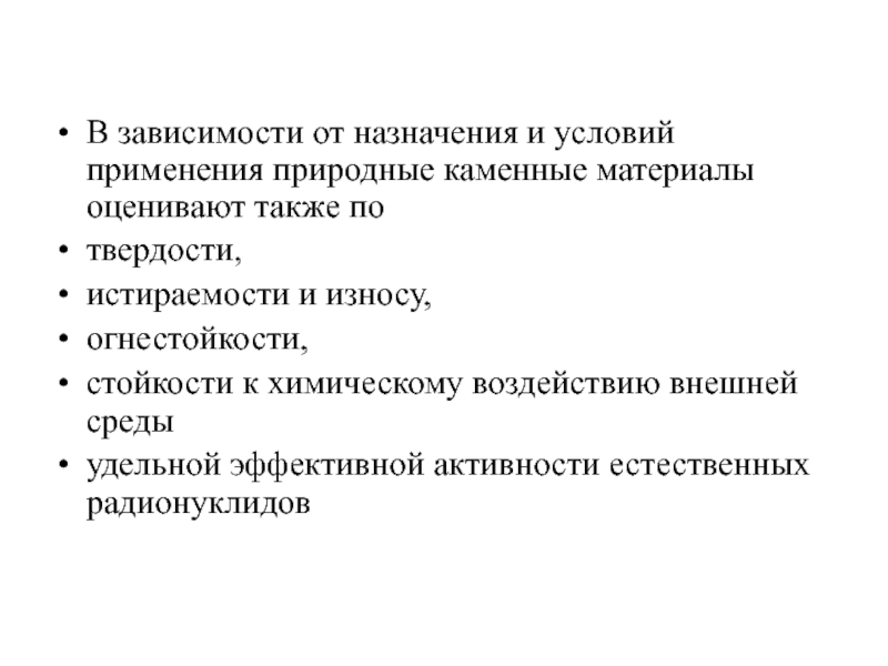 Слайд 16В зависимости от назначения и условий применения природные каменные материалы оценивают