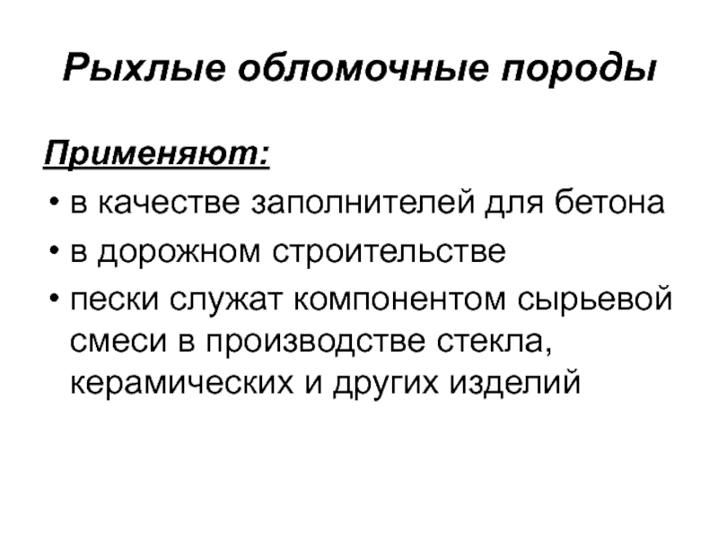 Грубообработанные каменные материалы и соответствующие горные породы широко используются в качестве заполнителей для бетонов, изготовления других искусственных каменных изделий на минеральных и органических вяжущих.