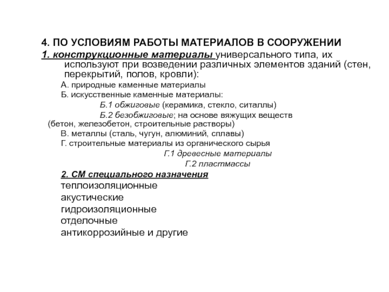 Слайд 44. ПО УСЛОВИЯМ РАБОТЫ МАТЕРИАЛОВ В СООРУЖЕНИИ