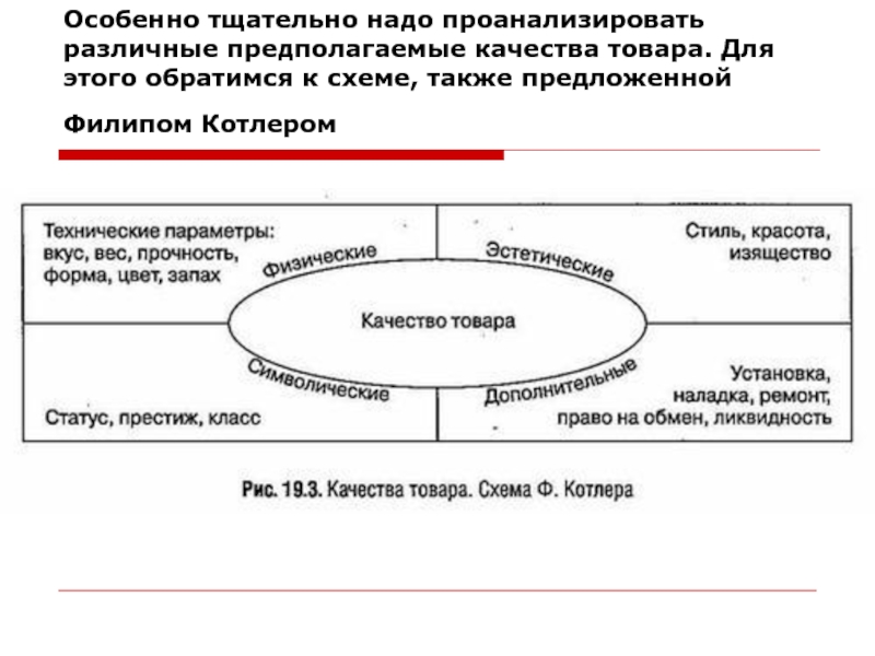 Слайд 11Особенно тщательно надо проанализировать различные предполагаемые качества товара. Для этого обратимся