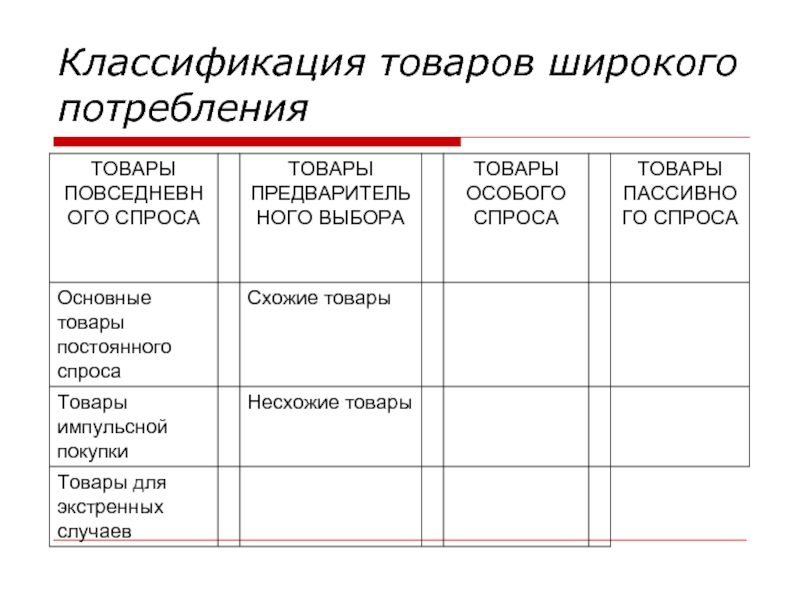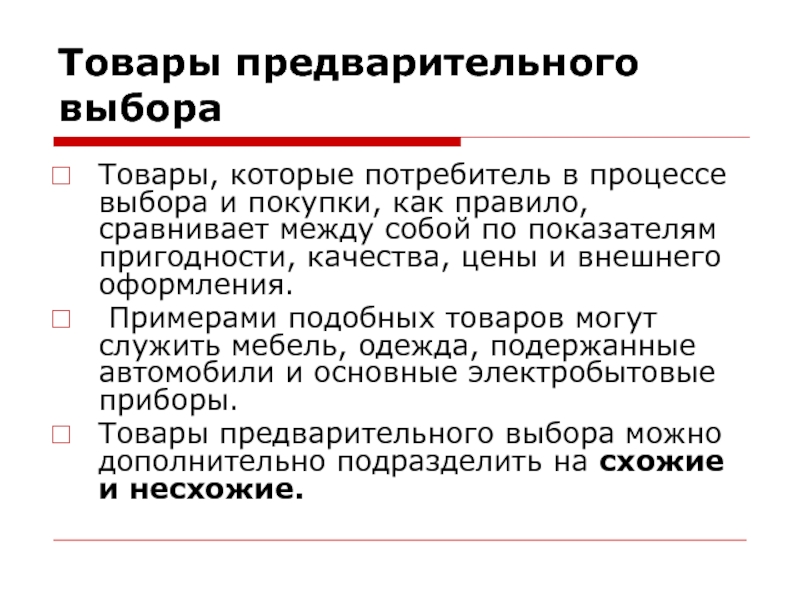 Товары предварительного выбора можно дополнительно подразделить на схожие и несхожие.