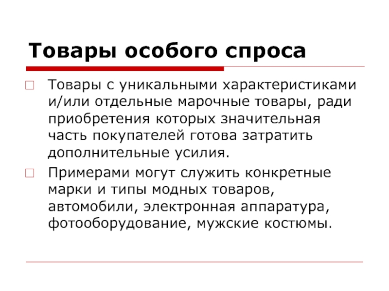 Товары с уникальными характеристиками и/или отдельные марочные товары, ради