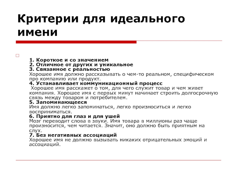 Имя должно легко запоминаться, легко произноситься и легко восприниматься.