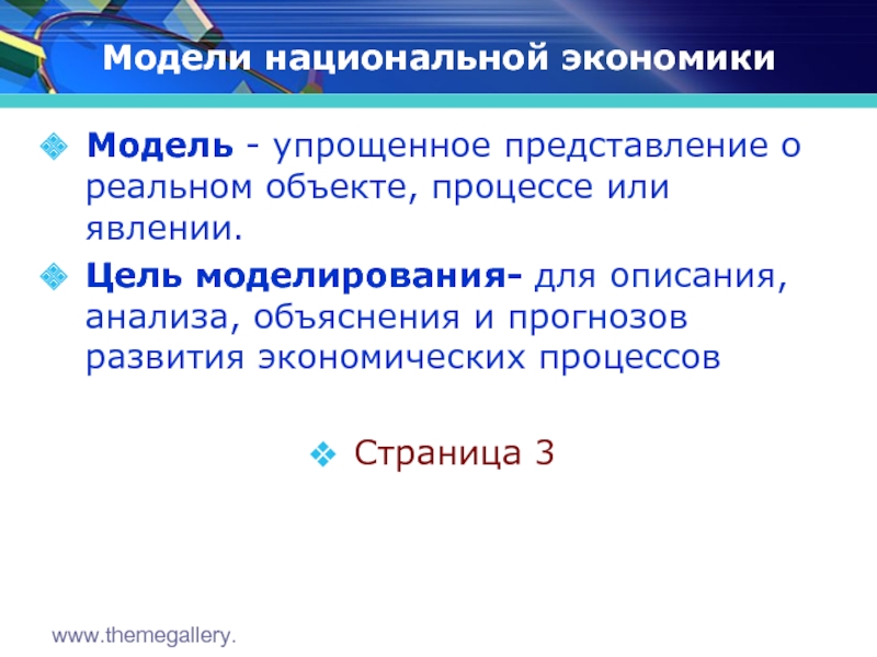 Цель моделирования- для описания, анализа, объяснения и прогнозов развития экономических процессов